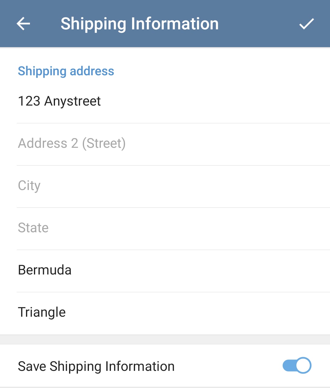 The user specifies shipping information or other info requested by the bot. This could be the user's full name, an email address, a phone number in international format, or a full postal address for delivery.