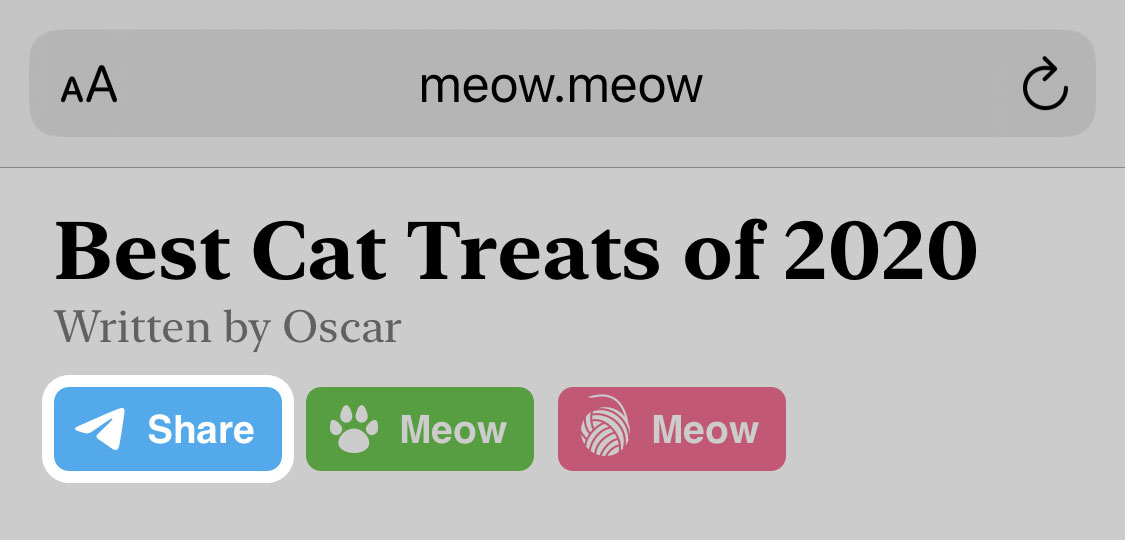 A Telegram Sharing Button is an easy way to let users forward content from your website or app to their friends, Channels or Saved Messages on Telegram.